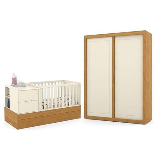 O Jogo de Quarto Infantil Tutto New conta com design moderno e funcional. É composto por um lindo Guarda-Roupa com amplo espaço interno e ótimas divisões para organizar as roupinhas e acessórios, e um Berço Multifuncional que conta com trocador, gaveteiro e cama auxiliar, inclusos no mesmo móvel. E não para por aí, ele acompanha o desenvolvimento do seu filho se transformando em uma linda mini cama. O quartinho do bebê será único, completo e especial com essa combinação.