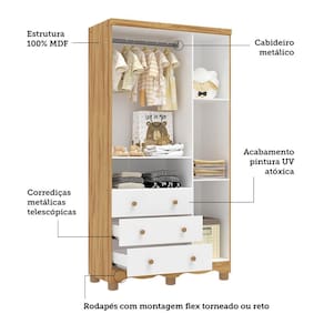 Guarda Roupa Infantil Uli New 3 Portas e 3 Gavetas - Móveis Peroba
