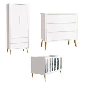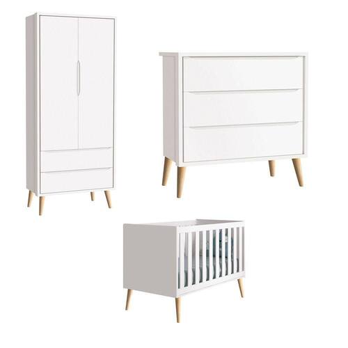 O Jogo de Quarto Bebê 2PTs Theo New - RELLER, é perfeito para o quartinho do seu baby. Possui pés em madeira maciça no estilo palito que contribuem para o ar retrô, as peças introduzem um desing clean que combinam com vários estilos de decoração. Contempla um Berço que exala personalidade e delicadeza, podendo transformar-se em mini cama futuramente, uma Cômoda Gaveteiro com três gavetas e um Roupeiro de duas portas e duas gavetas, super amplos, espaçosos e com divisórias internas, são ideais para uma perfeita organização das roupinhas e itens do seu bebê.