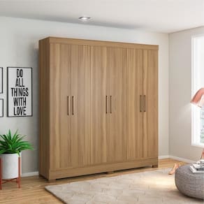 Possui 6 portas e 3 gavetas, todas com corrediças telescópicas e profundidade adequada para roupas e sapatos