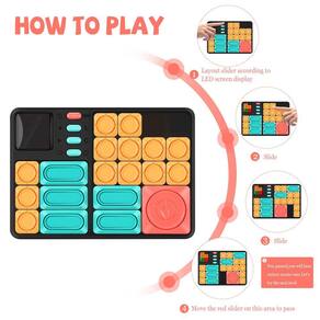 -?Inovador e interativo?Super Slide é um console de jogos interativo para quebra-cabeças deslizantes. Resolva o quebra-cabeça no LED deslizando os blocos, o objetivo é mover o grande bloco vermelho para o fundo da zona de indução. Existem mais de 500 quebra-cabeças diferentes que desafiam seus limites. Com um som de jogo revigorante e modos de jogo ricos, oferece diversão sem precedentes para resolver problemas! PS: Este item não inclui bateria.