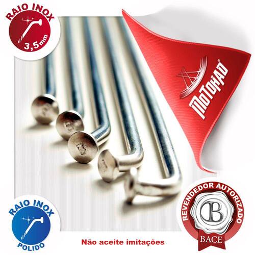 Os raios são produzidos com a liga inox AISI304 e passam por um polimento eletrolítico que dá mais durabilidade e brilho.