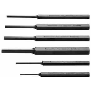 Utilizado para completar as operações de remoção de pinos ou rebites, os saca-pinos paralelos possuem durezas diferenciadas nas faces de golpe para garantir segurança e resistência em seu uso. Quem é PRO usa. Orientações Produzido em aço cromo molibdênio temperado.Têmpera por indução na ponta.Acabamento fosfatizado.DIN 6450. Estas ferramentas de impacto têm dureza diferenciada no gume de corte e na face que será golpeada.As ferramentas são submetidas a testes de aplicação para garantir que o processo de fabricação esteja dentro das especificações.A camada de fosfato mais a deposição de óleo aplicado na superfície das peças, garantem uma proteção excelente contra a corrosão.A variedade de tamanhos e formas de punções e talhadeiras, sempre assegura a ferramenta certa para cada aplicação.Utilizado para completar a operação de extração de um pino ou rebite, permitindo a expulsão total da peça. As ferramentas são produzidas e testadas conforme normas específicas. Observações Use óculos, luvas e outros equipamentos de proteção individual (EPIs) de acordo com a tarefa a ser executada. Utilize punções, saca-pinos e talhadeiras em superfícies ou componentes de dureza inferior a suas arestas de corte ou pontas. Descarte qualquer punção, saca-pino e talhadeira que apresente rachaduras, sinais de uso excessivo ou que tenham a face de impacto deformada. Golpeie as punções, saca-pinos e talhadeiras perpendicularmente às faces de impacto. Não use punções de centro para sacar pinos. Respeite as medidas e ângulos originais ao refazer a ponta dos punções ou gume de corte das talhadeiras. Armazene em local limpo e seco. Características Gerais EAN13 7891114050509 DUN14 17891114050506 NCM 8205.59.00 Peso Líquido 0,4800 kg. Peso Bruto 0,4800 kg. Metragem 0,001106 m³. Dimensões Embalagem (Compr. X Larg. X Alt.) 295x 150x 25 mm.