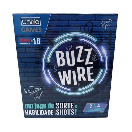 Informações do Produto: O jogo de shot buzz wire com 4 copos de shot é ideal para trazer a diversão em festas. Não encoste no buzz man e vença o jogo, se encostar você perderá e terá que tomar 2 doses de shot.