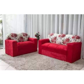 JOGO DE SOFÁ DE 2 E 3 LUGARES MODELO XAROPINHO - VERMELHO FLORAL