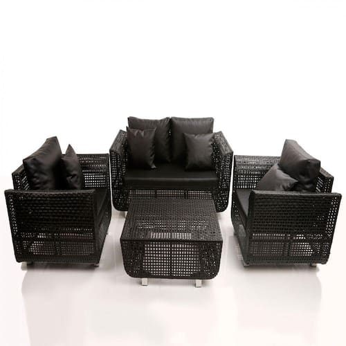 Jogo de Sofá e Poltronas Malibu com Mesa em Alumínio - Jardim, Área, Edícula, Piscina - Preto