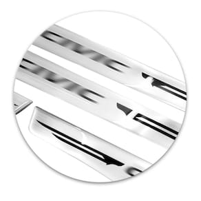 A soleira resinada exclusiva ao Civic, fixada nos pisantes do veículo, impede a danificação do mesmo devido ao fluxo de motorista e passageiros, no ato do embarque e desembarque. Além de sua importância na conservação do carro, possui uma aparência única, pelo seu visual moderno e elegante.