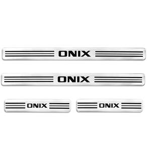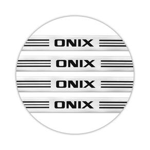 Jogo de Soleiras Chevrolet Onix na cor Prata para as Quatro Portas com Detalhes Modelo Original, Fabricado em Resina de Alta Qualidade e Brilho, Auto Colante.
