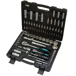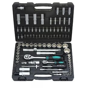 O kit de Chaves e Cachimbos 1358099 da Stels, é composto por 94 peças de excelente qualidade em aço cromo vanádio, soquetes estriados de até 32mm, extensão, chave catraca, cabo T, encaixes de 1/4 e 1/2, além de chaves allen e bits, e muito mais. Completissimo.