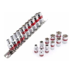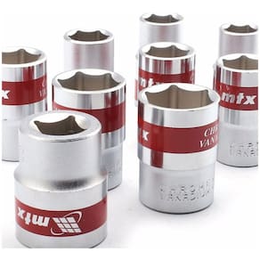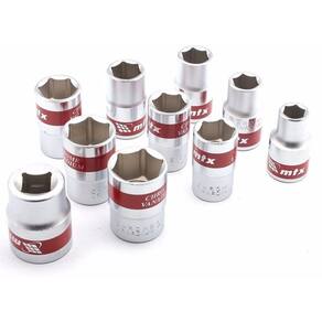 CONTEÚDO DA EMBALAGEM 1 Jogo de soquete 1/2" sextavado Soquete feito de alta qualidade em aço cromo vanádio com um cromo resistente, modelo é sextavado com 6 lados e tem um angulo de menor rotação que faz a operação ficarem mais fácil em locais de difícil acesso soquete intercambiáveis. Marca MTX DETALHES TÉCNICOS - Soquete encaixe de 1/2" - Bocal sextavado - Aço cromo vanádio - Marca: MTX ( Matrix Tools For Existence ) Itens: - São 10 soquetes de 1/2" - Medidas: 10mm, 12mm, 13mm, 14mm, 15mm, 16mm, 17mm, 19mm, 21mm e 22mm.