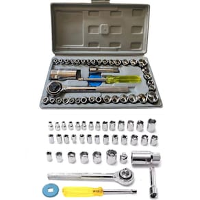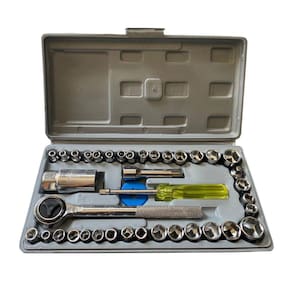 Jogo de soquete sextavado 1/4"e 3/8” com 40 peças é uma ferramenta projetada para tornar o trabalho de aperto e soltura de porcas e parafusos muito mais rápido e leve.