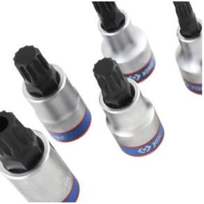 A chave soquete multidentada é ideal para parafusos especiais inbus xzn. A mesma consegue transferir mais torque para os parafusos, facilitando a retirada e colocação desse perfil. As chaves soquetes da king tony são fabricadas em aço cromo vanádio, possuem acabamento cromado e polido, tendo o bit fabricado em liga de aço s2 com acabamento antiferrugem, sendo indicada para o aperto e desaperto de parafusos especiais tipo inbus xzn multidentados de acordo com a norma din 3120.