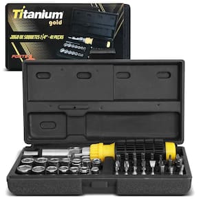 Com esse jogo de Soquetes e Ponteiras da Titanium você tem 41 peças que permitem diversas possibilidades, permitindo que você tenha a chave que precisa sempre a mão, tudo de maneira organizada dentro de uma prática maleta.