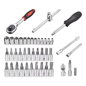 Equipe-se com o Kit de Ferramentas 46 Peças, projetado para oferecer versatilidade e durabilidade em manutenções domésticas e profissionais. Produzido em Aço Cromo Vanadium, garante máxima resistência ao desgaste e alta durabilidade. Versatilidade Completa: Inclui soquetes, chaves hexagonais, bits e acessórios, proporcionando soluções para diversas aplicações. Design Ergonômico e Seguro: A catraca reversível possui sistema Quick Release, permitindo trocas rápidas e eficientes das peças. Extensões e Articulações: Junta universal, extensões rígidas e flexível garantem acesso a parafusos em locais de difícil alcance. Organização e Transporte: Maleta compacta e resistente, feita de termoplástico leve, que não amassa. Conteúdo do Kit: 13 Soquetes sextavados – Encaixe ¼”: - 4 mm - 4,5 mm - 5 mm - 5,5 mm - 6 mm - 7 mm - 8 mm - 9 mm - 10 mm - 11 mm - 12 mm - 13 mm - 14 mm; 21 Soquetes tipo Bits: - Fenda: 4 mm - 5,5 mm - 7 mm; - Hexagonal: 3 mm - 4 mm - 5 mm - 6 mm - 7 mm - 8 mm; - Philips: PH1 - PH2 - PH3; - Pozi: PZ1 - PZ2 - PZ3; - Torx: T10 - T15 - T20 - T25 - T30 - T40. Ferramentas e Acessórios: - 3x Chaves Hexagonais L: 1,5 mm - 2 mm - 2,5 mm; - 1x Chave de força fixa ¼” com cabo 150 mm; - 2x Extensões 50 mm (2”) e 100 mm (4”); - 1x Extensão flexível 150 mm (6”); - 1x Catraca Reversível ¼” Quick Release (15 x 2,7 x 2,3 cm); - 1x Cabo de Força T; - 1x Junta Universal Articulada; - 1x Bit Adaptador; - 1x Maleta organizadora de termoplástico leve. Marca: Aquilae