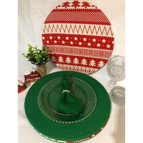 Contém: 06 Base Redonda 35x35cm Em MDF 06 Capas Para Base c/elástico Para Facilitar a lavagem 06 Guardanapos Tecido Colorido 30x30cm 06 Anéis Porta Guardanapos Modelo das argolas podem variar dependendo da disponibilidade