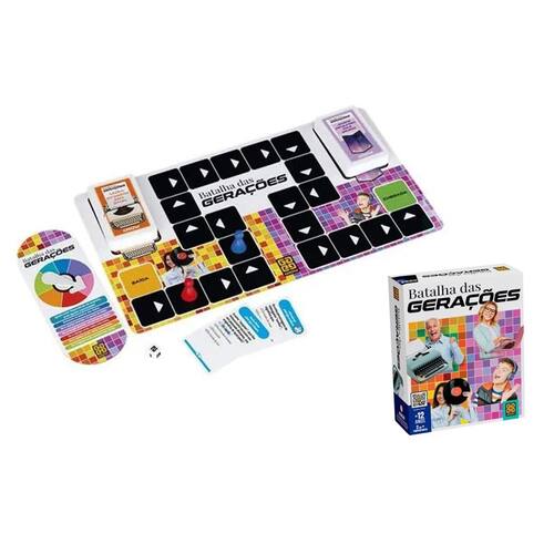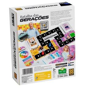 O jogo que tem como objetivo ser uma divertida brincadeira entre pessoas de diferentes idades. Através de perguntas, respostas, desafios e gincanas, os jogadores vão conhecer um pouco mais do universo das outras gerações. No mundo corrido e ultra conectado em que vivemos, Batalha das Gerações proporciona momentos únicos de convivência familiar. O que é Kpop? O que significa LP? O que é flopar? Essas e outras dúvidas serão resolvidas serão resolvidas neste jogo pelas diferentes gerações.São 224 cartas com perguntas e respostas1 tabuleiro2 peões1 dado1 roletaA partir de 12 anos2 ou mais participantes