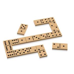 Cada jogador começa com um número definido de peças geralmente 7 . As peças são formadas por dois quadrados, cada um com uma quantidade de pontos de 0 a 6 . O jogo começa com uma peça no centro da mesa e os jogadores alternam colocando peças que combinam em pelo menos um dos lados com as peças já na mesa.