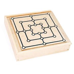 O jogo é jogado em um tabuleiro com 24 pontos conectados por linhas. Cada jogador tem 9 peças e começa alternando colocando uma peça em um ponto vazio. Após todas as peças serem colocadas, os jogadores movem suas peças ao longo das linhas para formar moinhos.