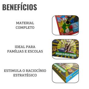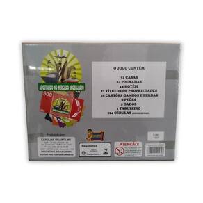 Conteúdo da embalagem: 01 Tabuleiro, 21 Títulos de Propriedade, 18 Cartões Ganhos ou Perdas, 224 Notas, 01 Manual de Instruções, 32 Casas, 24 Pousadas, 12 Hotéis, 02 Dados e 06 Peões.
