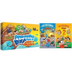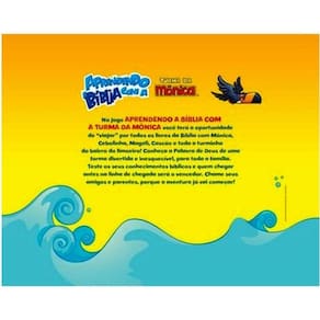 APRENDENDO A BÍBLIA COM A TURMA DA MÔNICAA Turma da Mônica irá acompanhar você e seus amigos em uma viagem incrível por toda a Bíblia. Os participantes aprenderão mais sobre os acontecimentos bíblicos de uma forma fácil e divertida. Trata-se de um “Quiz” com perguntas e respostas, que permite que vocês avancem no percurso do tabuleiro à medida que respondem corretamente às perguntas das cartas. O tabuleiro é num formato de peixe, e cada casa é um livro da Bíblia. O percurso completo traz todos os livros, na ordem em que eles estão posicionados nas Sagradas Escrituras. Vamos começar a viagem?IDADE: A partir de 7 anos PARTICIPANTES: 2 a 6 jogadoresCATEGORIA: Jogo de tabuleiroOBJETIVO: Ser o primeiro jogador a conduzir o seu peão até a casa CHEGADA, no final do Novo Testamento do tabuleiro.DIMENSÕES (Caixa): 43 x 32 x 5 cmCÓDIGO DE BARRAS: 7 8 9 6 0 2 7 5 5 5 8 6 8 PÚBLICO: Crianças e adultos que querem aprender a Bíblia e/ou gostam da Turma da Mônica. É recomendável que adultos joguem juntos com as crianças.COMPONENTES:1 Tabuleiro com roleta inserido no fundo da caixa1 Seta para a roleta1 Folheto de regras6 Peões de cores diferentes1 Baralho com 144 cartas (em 10 cores relacionadas às casas do tabuleiro).