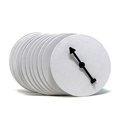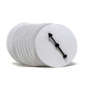 Este kit inclui doze (12) placas giratórias prontas para decorar. Cada placa é branca em branco na frente com uma parte traseira branca levemente texturizada. Cortamos essas placas giratórias de um estoque de aglomerado totalmente gravável, não revestido, que não mancha e funciona bem com caneta, marcador, giz de cera, lápis de cor, tinta e toneladas de outros suprimentos de arte comuns.