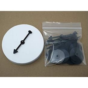 Este kit inclui doze (12) conjuntos de spinners de seta reutilizáveis de duas partes. Cada conjunto inclui uma base estável de 1 5/16" de diâmetro com um ponteiro destacável em forma de seta de 2 3/4". Esses componentes se encaixam e se separam para serem s repetidamente.