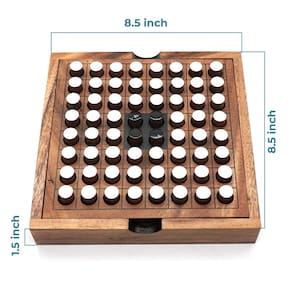 O jogo de estratégias Othello para ganhar. Este jogo Othello inclui tabuleiro Othello de madeira de 20 x 20 projetado a partir de madeira natural e 64 peças reversíveis de madeira de cores preto e branco. Este jogo é jogado por dois jogadores, um jogador joga o lado preto para cima e outro joga branco para cima (32 peças reversíveis por cada jogador) e os jogadores precisam colocar uma peça colorida para fazer uma fileira na horizontal, diagonal ou vertical para virar a peça do oponente para o lado da cor. Entretenimento para todos. Este jogo foi projetado para proporcionar um desafio divertido que crianças e adultos podem desfrutar. É um ótimo exercício de estratégias mentais que inspira os jogadores a pensar em ganhar o jogo. Jogos de madeira natural. O conjunto é feito de madeira 100% natural que foi usada e cada peça do conjunto é feita à mão com grande precisão para garantir um ajuste fácil e correto. A madeira é hipoalergênica e livre de produtos químicos, sem odor perceptível. - Jogos de tabuleiro clássicos – jogos de tabuleiro Othello para adultos e família, jogos para dois jogadores que os jogadores precisam colocar uma peça colorida para fazer uma fileira na horizontal, diagonal ou vertical para virar a peça do oponente para seu lado colorido. - Outro jogo clássico para decoração – com os jogos de tabuleiro, Othello pode colocar em uma mesa de centro para decorar ou colocar em sua casa e mesa de trabalho. Por causa da madeira se projeta de forma bonita e clássica adequadamente com qualquer canto da casa. Jogos para famílias - Jogos de tabuleiro para famílias em designs de madeira – Os jogos de tabuleiro clássicos para dois jogadores e jogos familiares para crianças e adultos são feitos de madeira 100% natural que foi usada e cada peça do conjunto é feita à mão com grande precisão para garantir um ajuste fácil e correto. A madeira é hipoalergênica e livre de produtos químicos, sem odor perceptível. - Jogos de tabuleiro de estratégia para 2 jogadores: jogo Mastermind para adultos e crianças, jogos de tabuleiro para 2 sobre jogos de tabuleiro de estratégia para educação e entretenimento, um jogo para crianças podem aprender para um treinamento estratégico do cérebro, pensamento e análise de habilidades tanto na escola quanto em casa. - Outro jogo de tabuleiro para 2 jogadores: um divertido jogo de tabuleiro para dois jogadores adequado para qualquer mesa e para jogar em qualquer lugar. No entanto, se você quiser jogar em quatro jogadores em um time que também pode ser adaptado.