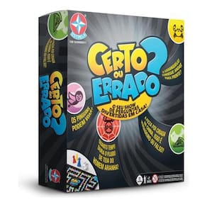 Com o jogo Certo ou Errado da Estrela você irá usar todo seu conhecimento para dizer o que é verdadeiro e falso, descubra e treine seus conhecimentos em diversas áreas na versão de tabuleiro do divertido jogo. Ele vai com: 1 tabuleiro, 100 cartas, 6 peões, 1 manual, 1 dado. Com ele a diversão estará garantida!