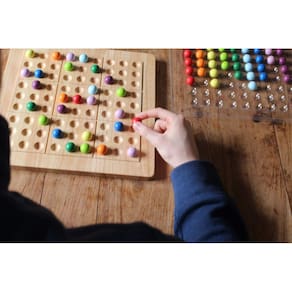 Sudoku na cor! Use cartas de quebra-cabeça para configurar o tabuleiro e raciocínio dedutivo para preencher os espaços ausentes. Uma de cada cor cabe em cada coluna, linha e quadrado. - A cor autêntico do jogo de tabuleiro sudoku - Para resolver o jogo - configure o tabuleiro de acordo com a carta do quebra-cabeça - Colorku pode ser jogado sozinho ou com outras pessoas. A partir de 8 anos - Inclui 104 cartas e soluções de quebra-cabeça – em 5 níveis de dificuldade diferentes (fácil, moderado, desafiador, resistente, extremo) com suporte de cartão de quebra-cabeça. - 81 pequenas bolas de madeira coloridas (9 vermelhas, 9 laranja, 9 amarelas, 9 verdes claras, 9 verde-escuras, 9 azuis claras, 9 azuis escuras, 9 índigo, 9 violetas) - Colorku pode ajudar a aprimorar suas habilidades de lógica e raciocínio dedutivo! - Confira nossa loja para jogos adicionais para jogar no mesmo tabuleiro - 29 cm x 29 cm - Peso 1,7 kg