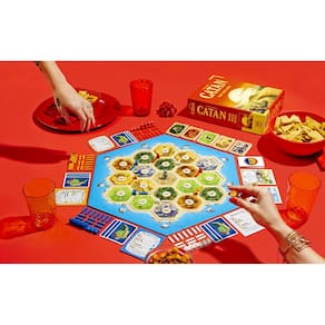 - EXPLORE CATAN: navegue até a ilha desconhecida de Catan e compita com outros colonos para estabelecer a supremacia.