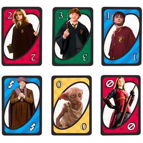 Descrição do produto : " O jogo de cartas UNO Harry Potter e divertido e rapido, agora com personagens iconicos do mundo de Harry Potter! Junte-se a Harry, Hermione, Ron, Professor Dumbledore e seus personagens favoritos de Hogwarts para uma noite de jogo UNO. Os jogadores correm para se livrar de todas as suas cartas, combinando uma carta em sua mao com a carta atual mostrada no topo do baralho. Ganhe pontos sendo o primeiro a se livrar de todas as cartas da sua mao. Cartas de acao especiais proporcionam momentos de mudanca de jogo, pois cada uma desempenha uma funcao para ajuda-lo a derrotar seus oponentes. Existe ate um cartao especial de regras do Chapeu Seletor! Quando voce joga esta carta, outro jogador de sua escolha deve continuar comprando cartas ate encontrar uma carta da Grifinoria! Outras cartas de acao incluem Passa a Vez, Inversao, Bisca 2 e Joker. O primeiro jogador ou equipe a chegar as 500 pontos ganha – e quando voce estiver com apenas uma carta, nao se esqueca de gritar “UNO!”. Um otimo presente para fas de Harry Potter a partir de 7 anos. Para 2 a 10 jogadores, a partir de 7 anos. As cores e decoracoes podem variar. : " Detalhes técnicos : Marca: Mattel : Referência: FNC42 : Idade recomendada: 7 : Possui Luzes: Não : Possui Sons: Não : Dimensões aproximadas da embalagem: 14 x 9 x 2 cm (A x L x C) : Ean: 887961587579 : Contém na Embalagem : Inclui 112 cartas mais instrucoes.