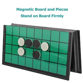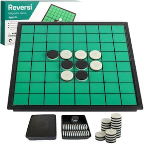 Jogo Reversi – Jogo de tabuleiro portátil para viagem Vikutu 24.6 cm - Tamanho de viagem – 24,6 x 24,6 cm Portátil, metade dobrável na sua bolsa, brinque em qualquer lugar no carro, avião - Conjunto magnético – as peças possuem ímãs, garantindo que permaneçam firmemente no lugar mesmo em superfícies irregulares, proporcionando estabilidade para jogos ininterruptos durante viagens ou aventuras ao ar livre - Qualidade premium – Feito com plástico de alta qualidade, suave e resistente, leve e construído para durar, o tabuleiro de xadrez funciona como um estojo de armazenamento conveniente, garantindo que nenhuma das peças se perca - Jogo de tabuleiro de presente – além de um jogo, presente encantador para crianças, amigos ou família. Seu design fofo e jogabilidade estratégica o tornam uma opção de presente atenciosa e envolvente. - 2 caixas extras - 2 caixas extras para armazenamento de peças