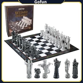 O conjunto inclui peças de xadrez e tabuleiro. As peças de xadrez medem 2 a 4 polegadas.