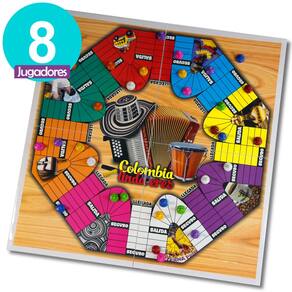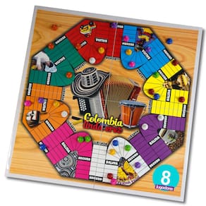 PARQUÉS JUEGO DE MESA PARA ADULTOS 8 Y 6 PUESTOS. Este maravilloso juego colombiano de doble cara es la máquina perfecta del tiempo para viajar al pasado y recordar esos momentos maravillosos con la familia y los amigos jugando en esos parqués de vidrio por noches enteras. Por el lado A es para 8 jugadores y por el lado B es para 6 jugadores. Fichas y tablero magnéticos. - PARQUÉS COLÔMBIANO 8 JUGADORES. Você está disponível este tablero de parqués para 8 jugadores, 8 Y 6 PUESTOS, ahora la diversión crece, para una familia grande un parqués grande. Tira los dados y diviertete en grande, invita a tu parche de amigos y crea recuerdos increibles con ellos!. Por el lado A es para 8 jugadores y por el lado B es para 6 jugadores. Fichas y tablero magnéticos. - Jogo de tabuleiro PARCHEESI para 8 jogadores. Además del tablero magnético plegable de caras recibirás 32 fichas, 2 dados, 1 bolsa de tela para proteger, 1 bolsa de yute para guardar as fichas e 1 caixa de papelão ondulado como embalaje. - ???? Cómo se juega el PARQUÉS JUEGO DE MESA COLÔMBIANO 8 JUGADORES? Podrás escuchar expresiones como: "paté perro para atrás", "vuelta obligada" y "pagando treses y señas" porque cada Colombiano tiene sus propias regas! ???, pero en general las regas de este juego familiar son similares a las del parcheesi game autêntico, parchis game y ludo game para adultos. - Jogo de parquis colombiano autêntico. Este é o regalo perfeito para um colombiano ou para alguien especial que ame los juegos de mesa. Este juego é fabricado na Colômbia, un ejemplo de las artesanías colombianas y de la belleza de nuestra tierra. Viene decorado com figuras coloridas que te harán recordar nuestra amada tierra colombiana!
