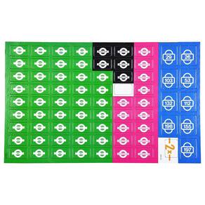O conjunto inclui um tabuleiro de jogo, livro de registro, peças de baralho, cartas e bilhetes de viagem