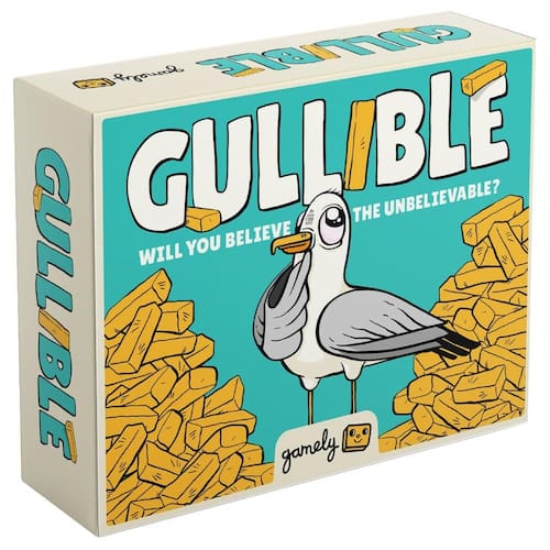 Gullible: o jogo de tabuleiro familiar de fatos surpreendentes, criatividade e blefar. Você vai enganar sua família e amigos neste hilário jogo de perguntas e respostas com uma reviravolta? - O jogo hilário e criativo com uma torção. Usando sua inteligência, imaginação e blefe, você será capaz de enganar o outro time para acreditar no inacreditável? Gullible é um jogo de festa onde você cria respostas falsas para perguntas estranhas para enganar seus oponentes e fazê-los acreditar no ridículo. - Invente fatos falsos e faça suas apostas. A cada rodada, ambas as equipes inventam dois fatos falsos que são mais críveis do que a verdade para tentar enganar o time adversário. Cada time então aposta suas fichas no que eles acham que são as respostas certas. Todas as fichas colocadas em fatos falsos são perdidas para sempre e o time que segurar suas fichas por mais tempo vence. Você vai espalhar suas apostas ou ir allin? - O jogo de festa perfeito para a família para adultos e adolescentes, grupos grandes e pequenos. O gullible pode ser apreciado por até dez jogadores e também funciona tão brilhantemente quanto um jogo para dois jogadores - tornando-o o jogo de festa perfeito para sair no dia de Natal, um jantar, na noite de jogos em família ou na noite de encontro. - O jogo Trivia onde você não precisa saber os fatos! Na Gullible, você não precisa saber nenhuma resposta porque as inventa! Por exemplo, quem sabe como um bebê ornitorrinco é chamado?! Tudo o que você precisa fazer é encontrar duas respostas falsas que você acha que o outro time achará mais crível do que a verdade. Um puggle? Um Onglet? Um Platypini? Uma delas é verdadeira, mas qual delas? ! - Um dos jogos mais vendidos da França chega ao Reino Unido! Gullible é a versão do Reino Unido do jogo de festa francês "Pigeon Pigeon". Avaliado por ser rápido de aprender (comece em 2 minutos) e por sua jogabilidade super divertida, a Gullible está pronta para conquistar o Reino Unido! - Ótima diversão e bom para o mundo. Quando você compra um jogo da Amazon, você não está apenas comprando um jogo de festa super divertido, mas também fazendo o bem para o mundo. Fazemos nossos jogos tão ecológicos quanto podemos, doamos 10% dos lucros para instituições de caridade, plantamos 10 árvores para cada 1 utilizado e doamos milhares de jogos para instituições de caridade e boas causas a cada ano.