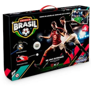 Jogo de Tabuleiro - Gol a Gol - Campeões do Brasil - Adijomar: Brasileiro já nasce apaixonado pelo futebol, já que não é possível estar dentro do campo para dar uma forcinha nas jogadas, por que não levar essa competição tão amada para sua casa? Com o jogo Gol a Gol Campeões do Brasil isso é possível. Teste sua habilidade e criatividade e desafie seus amigos e prove que você é o melhor! É preciso ter bastante agilidade e sincronia. Uma coisa é garantida: essa partida vai ser cheia de emoção! Da uma olhadinha nesses diferenciais: - Prático, intuitivo e divertido - Visual único inspirado nos campos de futebol brasileiros - Acompanha luvinha para defesa - Chute com tudo com sua chuteira - Partida inovadora, desafiadora e divertida - Materiais confeccionados de alta qualidade - Garante a brincadeira e o desenvolvimento da percepção e reflexos - Caixa irada e criativa, traz a emoção dos estádios a sua casa Informações: • Produto: Campeões do Brasil • Marca: Adijomar • Material do Produto: Plástico e PVC • Tipo: Jogo de futebol de mesa • Conteúdo: 01 Tabuleiro Campeões do Brasil, 02 Luvas, 02 Varetas de 30 cm, 02 Chuteiras, 06 Bolinhas e 2 Arquibancadas • Recomendação: para crianças a partir de 06 anos de idade Especificações: • Referência: 0904 • Código de Barras: 7897020209048 • Embalagem (C x A x L): 50 x 32 x 10 cm • Embalagem (Peso): 1.050 kg • Registro: CE-BRI/ICEPEX-N 01262-14 • Certificado: Órgãos Autorizados - OCP´S (Organismos de Certificação de Produtos) BENEFÍCIOS DE BRINCAR: - Eleva a autoestima - Exercita a memória - Estimula o raciocínio - Exercita o imaginário - Desenvolve a criatividade - Desenvolve percepção visual - Desperta a atenção e curiosidade - Desenvolvimento neuropsicológico - Estimula habilidades motoras básicas - Incentiva a comunicação e linguagem - Desenvolve aspectos emocionais e afetivo - Estimula o reconhecimento de formas e cores Aviso: - As imagens são meramente ilustrativas - Os tamanhos e medidas são aproximados - As cores e estampas dos produtos podem ter variações - As informações são de responsabilidade do fabricante ou fornecedor