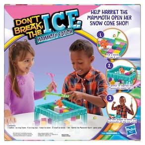 Jogo de tabuleiro Don't Break The Ice Mammoth Edition | 3 anos ou mais | 2 a 4 jogadores | Jogos pré-escolares e infantis (exclusivos da Amazon) - JOGO DON'T BREAK THE ICE COM TEMA MAMMOTH: O jogo infantil Don't Break the Ice Mammoth Edition combina a jogabilidade clássica de Don't Break the Ice com um personagem adorável, blocos coloridos e morra - COM HARRIET THE MAMMOTH: Ajude Harriet the Mammoth a abri-la loja de cones de neve! O suspense aumenta à medida que as crianças se revezam batendo blocos de “gelo” na bandeja de gelo usando um martelo. Mas cuidado, ou Harriet pode cair em 2 maneiras de jogar: escolha entre a jogabilidade clássica ou uma variação de nível superior que inclui um dado com 6 cores. Em ambos os jogos, o último jogador a manter Harriet no gelo vence - COLORED BLOCKS AND DIE ADD A TWIST: Frozen Fishy Fins? Sorvete de algas marinhas? Nessa segunda forma de jogar, a cor de um bloco representa o sabor de um cone de neve. Role o dado colorido para obter um sabor para “colher” ou nocautear - FÁCIL DE CONFIGURAR E JOGAR: simples de configurar e rápido de jogar, este jogo pré-escolar é ótimo para brincadeiras, noites de jogos em família e diversão a qualquer momento! Nenhuma leitura é necessária. Para 2 a 4 jogadores — Presente divertido para crianças: jogos familiares clássicos e jogos pré-escolares são ótimos presentes de aniversário para crianças ou presentes de Natal para meninas, meninos e crianças em idade pré-escolar a partir de 3 anos