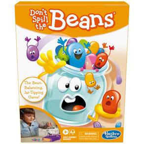 - PEÇAS DIVERTIDAS E COLORIDAS: Esta edição do jogo de tabuleiro infantil Don't Spill the Beans inclui mais de 60 feijões de plástico coloridos e etiquetas para criar uma cara engraçada na jarra de plástico