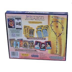 Apparition é o primeiro jogo de tabuleiro do mundo focado exclusivamente na Santíssima Virgem Maria. O objetivo do jogo é duplo: ser entretenimento/divertido e, ao mesmo tempo, trazer Mary para a vanguarda de nossas vidas terrenas. Cresça em sua fé mergulhando no conteúdo online dos 168 cartões de jogo. Depois do jogo, aprenda sobre Mary clicando no código QR de cada carta. Use essas histórias de aparições para envolver Maria de forma mais ativa em seus pensamentos e aspirações. Como outros jogadores relataram, sinta sua alma sendo tocada à medida que você cresce na compreensão das mensagens, virtudes e de como ela cumpre “Para Jesus por meio de Maria”. O presente perfeito para: idosos e adultos: noites de jogos, aniversários/Adolescentes: confirmação, grupos de jovens/Crianças: Primeira Comunhão, Natal, aniversários/Professores: educação religiosa, escola dominical, atividades religiosas, escolas católicas, escolas domiciliares, escola bíblica de férias Beautiful Game: com 1.200 anos de arte mariana, incluindo obras dos famosos pintores Leonardo da Vinci, El Greco, Francisco de Goya, Jusepe de Ribera E Miguel Cabrera. - 100% Sobre Mary - Apparition é o primeiro jogo de tabuleiro do mundo focado exclusivamente na Santíssima Virgem Maria. O objetivo do jogo é duplo: ser entretenimento/divertido e, ao mesmo tempo, trazer Mary para a vanguarda de nossas vidas terrenas. - Regras simples e rápidas - Para crianças de 8 a 108 anos, com regras opcionais e simplificadas para crianças pequenas. Basta combinar conjuntos de cartas para ganhar Graças Celestiais. Normalmente, leva de 25 a 30 minutos para jogar. - O presente perfeito para: idosos e adultos: noites de jogos, aniversários/adolescentes: confirmação, grupos de jovens/crianças: Primeira Comunhão, Natal, aniversários/Professores: educação religiosa, escola dominical, atividades religiosas, escolas católicas, escolas domésticas, escolas bíblicas de férias. - Inspire-se - Depois do jogo, use códigos QR nos 168 cartões de jogo para aprender as histórias por trás das aparições e dos temas do Rosário. Use essas histórias de aparições para envolver Maria de forma mais ativa em seus pensamentos e aspirações. - Profundidade da estratégia - Acomoda jogadores que gostam de usar várias estratégias para vencer, bem como aqueles que preferem uma experiência mais simples. - Soul Touching - Como outros jogadores relataram, sinta sua alma sendo tocada à medida que você cresce na compreensão das mensagens, virtudes e de como ela cumpre “A Jesus por meio de Maria”. - 100% papelão - Ecologicamente correto, sem peças de plástico. - Não gosta de ler as instruções do jogo? Aprenda o jogo em 6 etapas no YouTube. Procure por: @HigherCallingGames - Beautiful Game: com 1.200 anos de arte mariana, incluindo obras dos famosos pintores Leonardo da Vinci, El Greco, Francisco de Goya, Jusepe de Ribera e Miguel Cabrera.