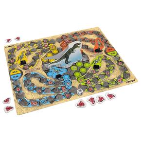 Para isso, eles passarão por Velociraptors e devem andar nas casas do tabuleiro conforme a indicação dos dados.