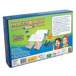 O clássico jogo de desenho e adivinhação agora em uma versão exclusiva para a criançada. Cada jogador será o desenhista e, na sua vez, tentará passar à sua equipe uma palavra ou expressão. É proibido falar, escrever letras e números e fazer gestos ou mímicas. Os únicos instrumentos que você terá à disposição são um lápis e um papel, para desenhar, esboçar e rabiscar o que quiser. Os colegas de equipe têm o tempo da ampulheta para adivinhar. E você não precisa ser desenhista, o que vale é a sua criatividade. O jogo foi desenvolvido especialmente para a idade de 5 a 10 anos, para estimular a criatividade na associação de desenhos e palavras. Quem tem de 5 a 7 anos, joga com o baralho azul, que possui palavras mais simples. Já quem tem de 8 a 10 anos, joga com o baralho vermelho, um pouco mais difícil e adequado à idade. São 480 palavras para desenhar. Cada carta tem quatro palavras. Na sequência, uma vai ficando mais difícil que a outra. A equipe só pode passar para a segunda palavra se acertar o desenho da primeira, e assim por diante. É preciso correr, porque o tempo é curto. Ganha a equipe que derrotar primeiro as quatro palavras desenhadas. Para isso, o que conta é muita criatividade e imaginação.