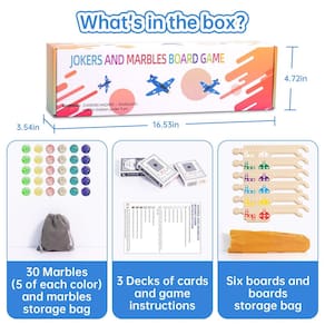 Jokers and Marbles Jogo de cartas Pegs and Jokers - Jogabilidade divertida: nossas regras de jogo de tabuleiro de mármore são fáceis de aprender, divertidas para jovens e idosos e proporcionam entretenimento sem fim. O conjunto de jogo de tabuleiro Jokers and Marbles inclui 6 tabuleiros de jogo interligados, 3 baralhos de baralho, 30 bolas de gude coloridas, instruções de jogo e 2 sacos de armazenamento para tabuleiros e bolinhas de gude - Alta qualidade: o jogo de tabuleiro Pegs and Jokers é feito com placas de madeira maciça resistentes, e evitamos estritamente o uso de tabuleiros de plástico baratos. Nossas placas são fáceis de montar com atualizações que não se movimentam. Quando o jogo começar, você precisa colocar os 6 tabuleiros juntos completamente e, em seguida, escolher sua cor favorita para jogar de acordo com o número de jogadores - Essencial para a família: este é o jogo de tabuleiro essencial para a noite de jogos em família! Quer sejam noites de jogos, feriados ou reuniões sociais casuais, traga este jogo de tabuleiro de bolinhas e coringas para infundir o evento com risadas e competições amigáveis. Prepare-se para embarcar nesta emocionante competição de mármore - Adequado para todas as ocasiões: com suas regras acessíveis e jogabilidade cativante, este jogo de coringas e bolinhas de gude é o companheiro perfeito para várias ocasiões. Nosso jogo de tabuleiro vem com duas lindas bolsas de armazenamento de tecido, perfeitas para levar em viagens, aventuras de acampamento ou festas. Aproveite a emoção deste jogo viciante a qualquer hora, em qualquer lugar - Melhor presente: o jogo é embalado em uma caixa colorida, o que o torna o presente perfeito para o entusiasta de jogos que você está procurando. A satisfação do cliente é a nossa motivação, se você receber o produto e se sentir insatisfeito, , certamente o ajudaremos a resolver o problema