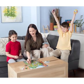 Baby Dinosaur Rescue! Um jogo de tabuleiro infantil cooperativo onde crianças de 4 a 8 anos trabalham juntas para levar todos os dinossauros à segurança da ilha antes que a lava encha o vale. Os jogadores trabalham juntos para ajudar todos os dinossauros a chegar à ilha. Jogue uma carta de item e caminhe pelo vale até aquele espaço. Desenhe um cartão de lava e a lava se aproxima de encher o vale. Ajude todos os dinossauros a chegar à ilha antes que o token de lava chegue ao último espaço e todos ganhem! Três níveis de jogo permitem que este jogo cresça com o seu filho. O jogo inclui 1 tabuleiro de jogo, 5 fichas de dinossauro, 1 ficha de lava, 13 cartas de lava, 36 cartas de terreno e três versões de jogo. As crianças aprenderão muitas novas habilidades, incluindo: - Resolução de problemas - Seguir instruções - Habilidades de fala - Revezamento - Desenvolvimento social - Cooperação. - Os dinossauros precisam da sua ajuda – os jogadores devem trabalhar juntos para ajudar os dinossauros a chegarem à ilha dos dinossauros antes que a lava chegue ao vale. Usando cartas baseadas em imagens, os jogadores trabalharão juntos para mover os dinossauros pelos espaços com imagens correspondentes para fugir da lava! - Não é necessária leitura – instruções simples e brincadeiras baseadas em imagens tornam esta a introdução perfeita aos jogos de tabuleiro que também ensinam habilidades essenciais como combinação, comunicação e trabalho em equipe. - Aprenda juntos, ganhe juntos: o Baby Dinosaur Rescue enfatiza o jogo e a colaboração em vez da competição. Os jogadores compartilham ideias e estratégias juntos para superar obstáculos enquanto aprendem novas habilidades por meio da diversão sem tela! - Perfeito para a noite de jogo em família – os detalhes fofos e vibrantes do Baby Dinosaur Rescue criam um ambiente imaginativo que crianças, pais e professores vão adorar. - Apoie uma pequena empresa familiar – somos uma equipe pequena e dedicada de professores, artistas e amantes de jogos apaixonados por criar jogos divertidos e educativos que unem famílias. Ao escolher o Baby Dinosaur Rescue, você não está apenas apoiando uma pequena empresa, mas também nos ajudando a continuar nossa missão de criar experiências de brincadeiras significativas e cooperativas para crianças e famílias.