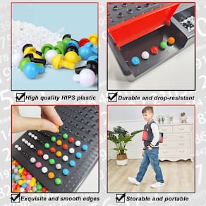 Codebreaker Cracking Leisure Strategy Brinquedo de tabuleiro interativo infantil para pais e filhos O que está incluído: - 1 tabuleiro com bandeja embutida para armazenar pinos - 192 pinos de código em 8 cores - 60 pinos de chave em 2 cores (preto e branco) - 2 pinos de ponta vermelha e azul representando os participantes do jogo Configurando o jogo O jogador atuando como Codemaker define pinos de cores de 5 dígitos código secreto. O Codemaker pode usar cores repetidas ou diferentes, ou até mesmo deixar alguns orifícios vazios. Os jogadores podem escolher os pinos vermelhos e azuis para se representar para fins de pontuação. Como jogar: ? O decifrador coloca 5 pinos coloridos em cada uma das fileiras de furos na zona de quebra de código. ? Ao lado da área de quebra de código está a área de prompt de resposta. O criador de códigos coloca pinos brancos ou pretos para alertar o decifrador na posição correspondente: - Preto significa que a cor e a posição estão corretas. - Branco significa que a cor está correta, mas a posição está incorreta. - Deixe vazio se a cor e a posição estiverem incorretas. No final de uma linha de testes de quebra de código, o decifrador usa as informações fornecidas pelo criador de códigos na linha anterior para continuar a deduzir o código na próxima linha. ? O jogo pode ser jogado em dois níveis de dificuldade diferentes: Nível 1: o código secreto é composto de 5 cores diferentes, facilitando adivinhar. Nível 2: as cores no código secreto podem ser repetidas Nível 3: cores repetidas e um ou dois orifícios podem ser deixados vazios, tornando mais difícil adivinhar a solução correta. O criador de códigos também pode confundir o decifrador colocando aleatoriamente um pino de prompt preto, deixando o codebreaker sem como começar. ? Quando o decifrador quebra o código, esse jogador coloca um pino vermelho ou azul representando-se ao lado do número de linhas em que o código foi quebrado. ?Os jogadores se revezam para trocar funções e o jogador que quebrar o código menos vezes ganha! Mais de 2.000 combinações de códigos possíveis tornam o jogo diferente sempre. Então deixe o jogo começar agora! - CODE BREAKERS: um jogo desafiador de lógica e dedução que é um jogo de tabuleiro popular no mundo. Este jogo de tabuleiro de sequência é simples, mas divertido. Com milhares de combinações de códigos possíveis, o jogo decifrador de códigos certamente será um quebra-cabeça! Você poderia criar um código inquebrável ou quebrar o código do seu oponente com o menor número de movimentos? Deixe os jogos começarem - Excelente qualidade: feito de plástico HIPS de alta qualidade, leve e fácil de transportar, você pode jogar a qualquer hora e em qualquer lugar. Lindamente projetado com uma bandeja de armazenamento embutida, perfeita para organizar esses acessórios de jogo de tabuleiro sem se preocupar em perdê-los - Educacional STEM: o jogo de tabuleiro de sequência mantém as crianças longe de produtos eletrônicos e pode desenvolver a inteligência cerebral das crianças e melhorar as habilidades de raciocínio e raciocínio lógico das crianças durante o processo de jogo mental. Ajude as crianças a crescer e aprender com os brinquedos STEM e STEAM mastermind - Jogo familiar: os jogadores se revezam configurando e quebrando códigos de cores, usando lógica, raciocínio e até mesmo um pouco de sorte para combinar com os códigos neste jogo de quebra de códigos. Após cada movimento, o criador de códigos dá pistas sobre o disjuntor de código. Ele fortalece o relacionamento entre pais e filhos quando jogado em uma noite de jogos em família. Este jogo de código é desafiador o suficiente para manter adultos e crianças entretidos, mas não muito chato que os atraia para continuar jogando várias vezes - Bom presente: uma caixa de embalagem simples e animada é um ótimo presente para crianças e adultos. Adultos, adolescentes e crianças vão adorar este jogo de tabuleiro de estratégia. Adequado para brincar em casa, escola, acampamento ou viagens