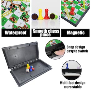 A prancha perfeita para viagens. Este conjunto de pranchas de cobras e escadas é perfeito para acampamentos, longos passeios de carro, férias escolares ou qualquer outra ocasião. O tamanho mini e o peso leve podem ser levados para qualquer lugar. O design magnético é estável mesmo em um carro ou avião dinâmico. Mantém as crianças longe de telas eletrônicas durante a viagem. - Cobras e escadas: um antigo jogo de tabuleiro indiano que é considerado um clássico mundial. Adequado para todas as idades, especialmente crianças e crianças. O jogo de tabuleiro de cobra e escada começa e termina com lançamentos de dados. Para frente ou para trás quando você encontrar o fundo da escada ou a cabeça das cobras, será uma "surpresa" - Alta qualidade: o tabuleiro de xadrez e as peças são feitos de plástico de alta qualidade, a parte inferior das peças é magnética, as peças lisas podem trazer a melhor sensação de experiência de jogo. O tabuleiro de xadrez é projetado como uma caixa de armazenamento e fácil abertura com "aba" - Magnetismo perfeito: as peças magnéticas podem se agarrar firmemente ao quadro, mas ainda assim são fáceis de mover. O magnético é bom para segurar peças no tabuleiro, mesmo você vira o tabuleiro de xadrez de cabeça para baixo. O jogo de tabuleiro de cobra e escada com peças magnéticas permite que os entusiastas aproveitem o jogo sem perturbações - Design dobrável: o tamanho aberto do tabuleiro mede 195 x 195 x 19 mm (8 polegadas x 8 polegadas), a caixa de armazenamento ajuda você a armazenar todas as peças e dados, ajudará você a organizar todas as peças e dados perfeitamente. Enquanto isso, o peso leve e dobrável pode ser transportado facilmente. As crianças podem jogar jogo de tabuleiro de cobra e escada a qualquer hora e em qualquer lugar - Bom presente: o pacote com regras do jogo o torna um presente realmente atraente, as crianças podem entender rapidamente as regras e aprender a brincar, pode exercitar a capacidade de raciocínio lógico numérico. Você pode jogar jogo de tabuleiro de cobra e escada em casa, escola ou na viagem com seus amigos ou familiares