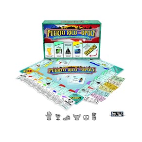 Atrasado para o Sky Puerto RICO-OPOLY, jogo multilíngue - Jogo no estilo Opoly - Este é PUERTO RICO-OPOLY e é a sua vez! - Jogo de tabuleiro de estratégia de poliéster temático