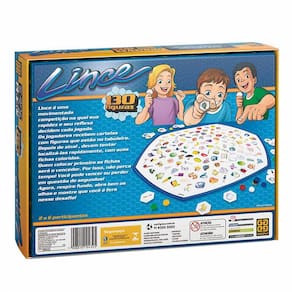 JOGO DE TABULEIRO - LINCE - GROW: Lince é uma movimentada competição na qual sua rapidez e seu reflexo decidem cada jogada. Todos os jogadores recebem as cartelas com figuras que estão no tabuleiro. Depois do sinal, devem tentar localizá-las rapidamente, com suas fichas coloridas. Quem colocar primeiro as fichas será o vencedor. Por isso, não perca tempo! Você pode vencer ou perder em questão de segundos! Agora, respire fundo, abra bem os olhos e mostre que você é fera neste desafio. COMO JOGAR LINCE: - Jogo Lince é ideal para 2 a 6 participantes de todas as idades. - Aqui, sua rapidez e seus reflexos fazem toda a diferença! As regras do jogo são as seguintes: os jogadores recebem as cartelas com figuras que estão no tabuleiro. Depois do sinal, é preciso localizá-las rapidamente, com suas fichas coloridas. - Quem colocar as fichas primeiro será o vencedor! - Por isso, não perca tempo! Você pode vencer ou perder em questão de segundos! - Todas as regras do jogo Lince estão incluídas junto com o manual do jogo. Basta encontrar suas companhias, seguir as regras e partir para a diversão!! INFORMAÇÕES: - Produto: Jogo Lince - Marca: Grow - Tipo: Jogo de Tabuleiro - Jogadores: de 2 a 6 participantes - Categoria: Infantil - Tempo estimado de jogo: 10 minutos - Conteúdo: 1 tabuleiro, 1 saco plástico, 18 fichas, 130 cartelas ilustradas e 1 manual de instruções - Recomendação: para crianças a partir de 05 anos de idade ESPECIFICAÇÕES: - Referência: 00432 - Embalagem (C x A x L): 33.5 x 23 x 04 cm - Embalagem (Peso): 0.370 kg - Material / Composição: papel e papel cartão - Registro: CE-BRI/ICEPEX-N 01264-25 - NM480-2004 OCP 0046 - Certificado: Órgãos Autorizados - OCP´S (Organismos de Certificação de Produtos) BENEFÍCIOS DE JOGAR: - Eleva a autoestima - Exercita a memória - Estimula o raciocínio - Exercita o imaginário - Desenvolve a criatividade - Desenvolve percepção visual - Desperta a atenção e curiosidade - Desenvolvimento neuropsicológico - Estimula habilidades motoras básicas - Incentiva a comunicação e linguagem - Desenvolve aspectos emocionais e afetivo AVISO: - As imagens são meramente ilustrativas - Os tamanhos e medidas são aproximados - As cores e estampas dos produtos podem ter variações - As informações são de responsabilidade do fabricante ou fornecedor