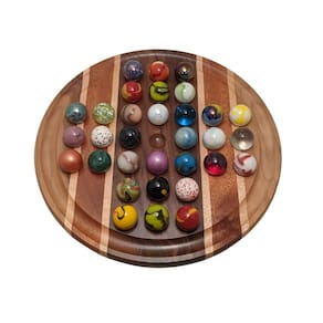 Nosso solitário exclusivo de madeira dura é feito com madeiras duras selecionadas e montado à mão para enfatizar as combinações distintas de grãos e espécies. Uma linda decoração para qualquer mesa de café e divertida de jogar. Além de ser um tabuleiro de jogo familiar, é o melhor entretenimento para seus convidados. Este jogo atrai qualquer pessoa que entre na sala. É um jogo divertido e fácil de jogar, mas muito difícil de vencer. As regras e instruções de jogo estão incluídas no jogo. Disponível em variações de onze e dezesseis polegadas. A placa de onze polegadas inclui bolinhas de vidro de 1 polegada. As dezesseis polegadas incluem bolinhas de vidro de 1-3/8 polegadas. Marble Solitaire é um jogo divertido e desafiador de jogar e um belo espetáculo para ser exibido. Observe que todos os nossos itens são feitos à mão com madeiras naturais que agregam variedade e beleza. Cada item é único. Não produzimos em massa e não existem duas placas iguais. Existem variações nas madeiras e o item que você receberá não será exatamente a madeira ou as tábuas das fotos mostradas. Se você precisar de algo específico, com antecedência. Embora trabalhemos duro para chegar perto do que você solicita, não podemos ser exatos devido à variedade natural de madeiras. Lembre-se de que a madeira é um material orgânico. Tem imperfeições naturais, nós, rachaduras, cicatrizes e pontos ásperos. Você deve esperar ter alguma beleza natural e variedade em seu produto. Se as imperfeições ou as cores das madeiras não forem do seu agrado, agradeceríamos que você as desse a chance de crescerem em você. Se você estiver procurando por madeiras ou cores específicas, informe-nos no momento do pedido e acomodaremos o máximo que pudermos. - Feito à mão com belas madeiras nobres distintas - Funcional e decorativo. Jogue e deixe de fora para ser admirado — Decoração de escritório perfeita — O jogo de 16" inclui bolinhas de 35 mm. 11" inclui bolinhas de 25 mm