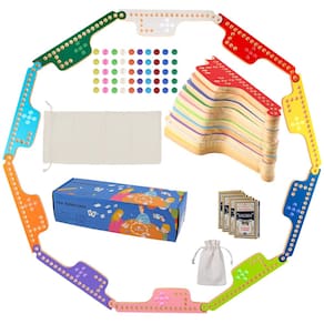 Medikaison Jogo de tabuleiro para 10 jogadores coloridos de Jokers and Marbles - ?Distintivo?: Embalagem em caixa colorida! Cores ricas deixam as pessoas felizes física e mentalmente, e é fácil rastrear a localização durante o jogo! Adequado para 2 a 10 jogadores. Escolha o número de tabuleiros de acordo com o número de jogadores! Inclui 10 tabuleiros coloridos, 50 bolinhas de gude coloridas (14 mm), dois sacos de pano (contendo bolinhas de gude e tábuas) e 4 pares de cartas de baralho. O tamanho de cada placa é de 35 x 12 x 1,5 cm. Observação: os produtos são reunidos, não presos juntos. - ?Alta qualidade?: As tábuas feitas de madeira maciça são muito grossas e duráveis! Além disso, não serão danificados mesmo se forem utilizados por décadas! Recuse tabuleiros de jogos de plástico, que não são seguros e duráveis. Observação: os produtos são montados juntos, não presos juntos. - ?Engraçado e educativo?: Este não é apenas um jogo simples, mas também um meio de educação. No jogo, a capacidade de raciocínio lógico das crianças, a capacidade de expressão da fala e a capacidade de cálculo matemático são treinadas. Este jogo é muito interessante, mais interessante do que jogos de agravação/desculpa e mais adequado para noites de jogos! Adequado para todas as idades! - ?Jogo essencial?: Este é um jogo de tabuleiro necessário para famílias e festas! Peça este divertido jogo para dar as boas-vindas à família e aos amigos, adequado para: acampamento, trailer, viagens, noite de jogos. - ?Atendimento ao cliente?: Use embalagem segura para garantir uma entrega segura! E qualquer dúvida será resolvida assim que receber a mensagem.